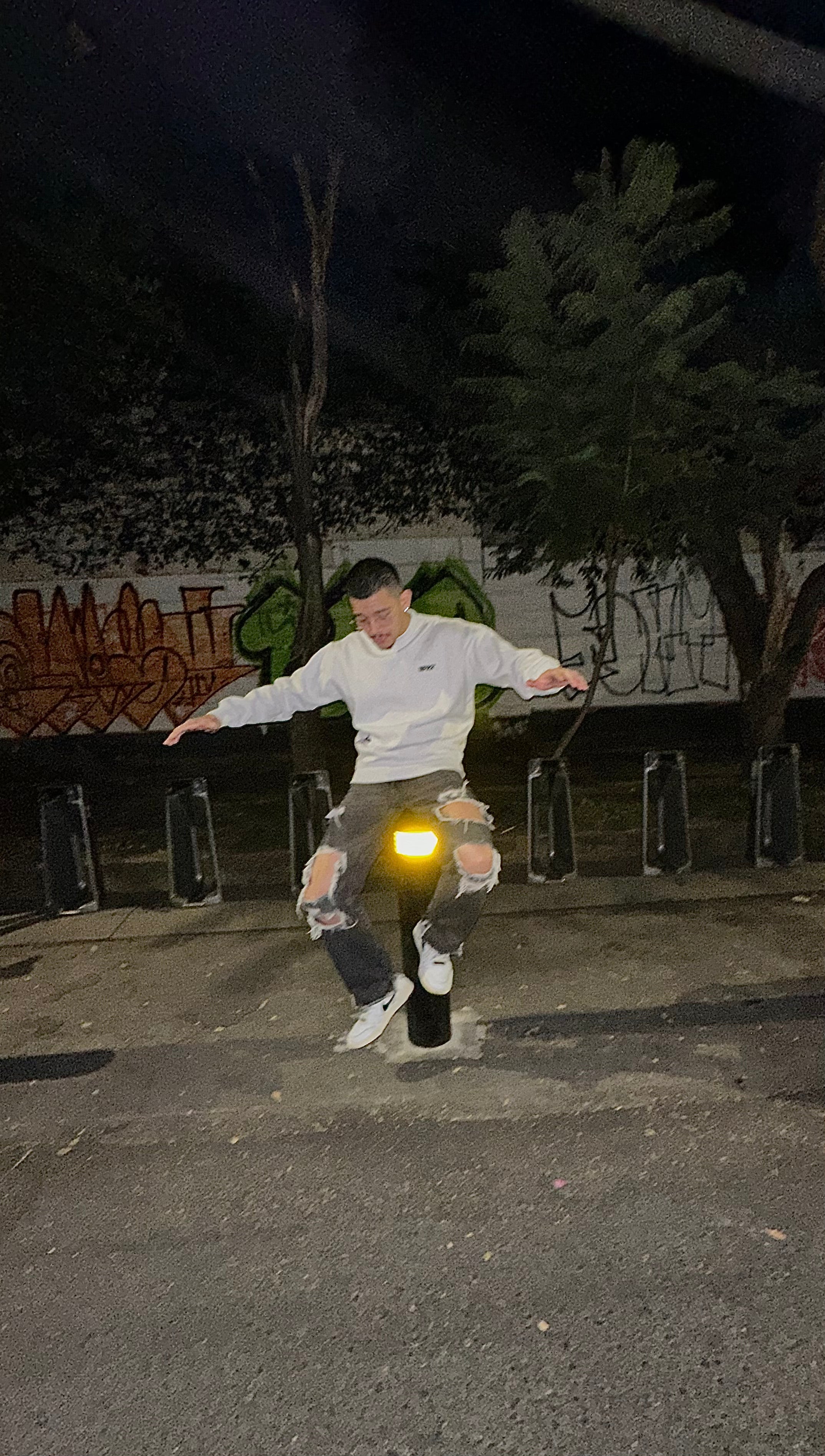 camina entre calles y grafitis.